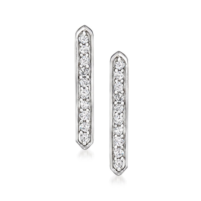 Established in 1952, Ross-Simons brings jewelry classics into the modern era. Stay on trend with these linear earrings. Set in polished 14kt white gold, they host diamond accents for a touch of shimmer. Post/clutch, diamond-accented linear earrings. Each Ross-Simons item arrives in a fine jewelry presentation box. Shop Ross-Simons jewelry risk-free as all items include a 30-day, 100% money-back guarantee.